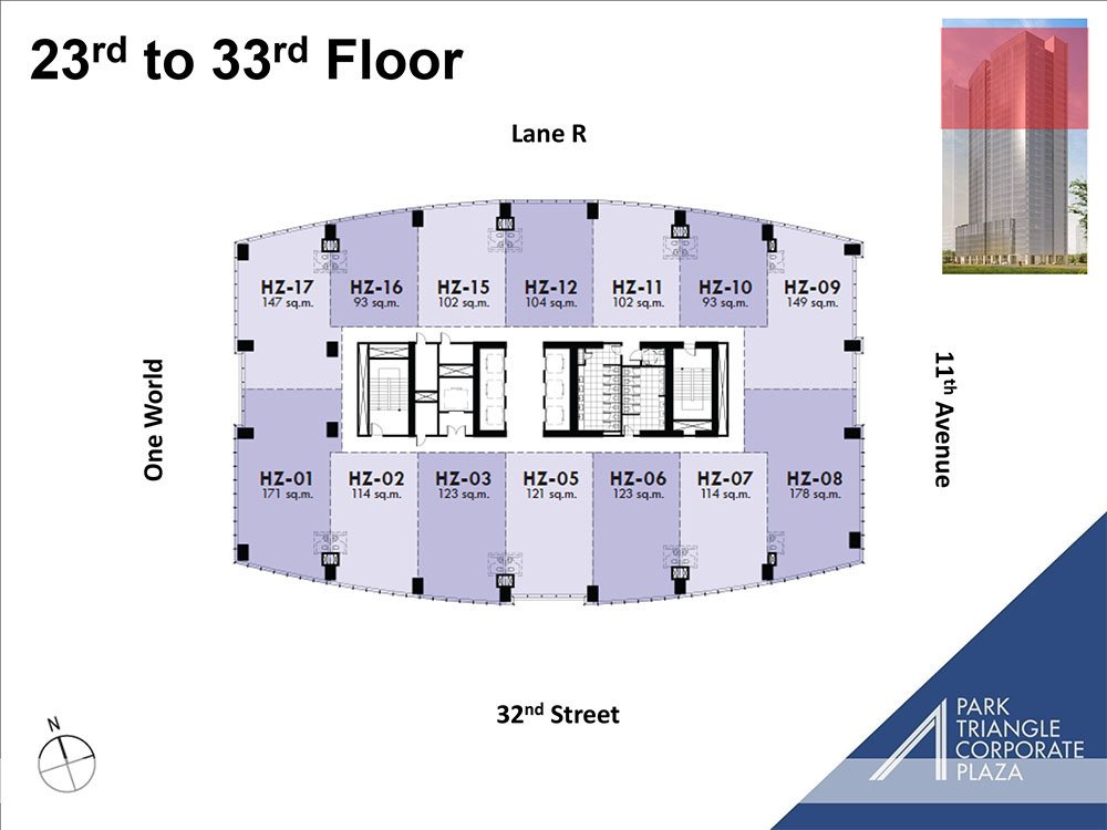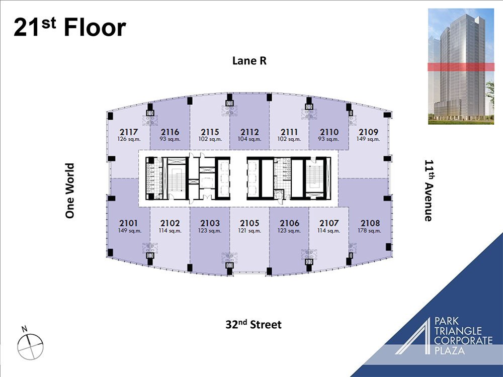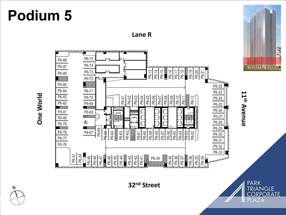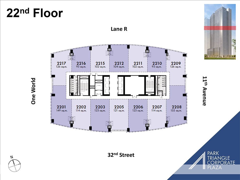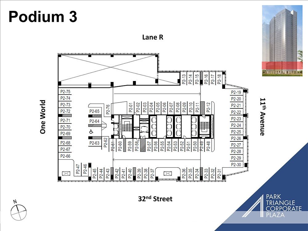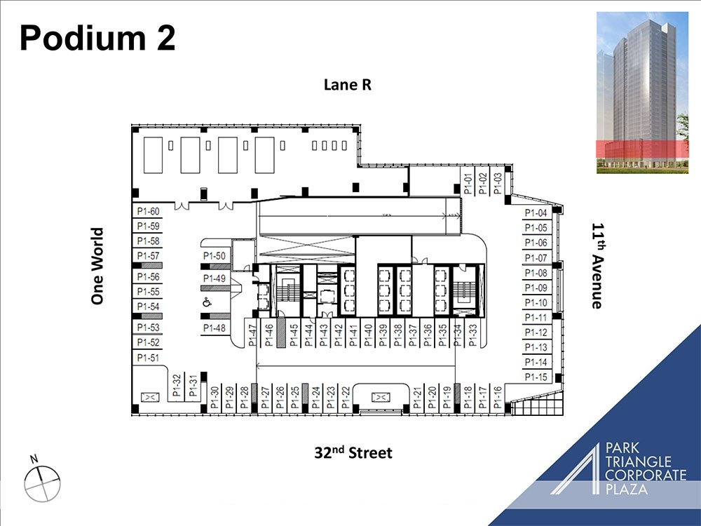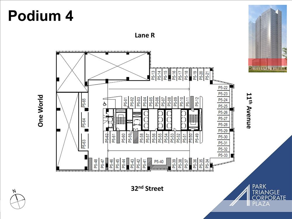 Bonifacio Global City (BGC) is one of the Philippines’ premier business hubs, known for its modern infrastructure, walkable streets, and vibrant lifestyle environment. The tower’s location ensures excellent accessibility to Makati, Ortigas, and NAIA, while being surrounded by retail centers, educational institutions, and cultural landmarks such as Bonifacio High Street, Market! Market!, and The Mind Museum. As part of Ayala Land’s Park Triangle mixed-use development, the building benefits from integration with residential and retail components, creating a complete live-work-play setting that enhances tenant experience and positions businesses at the center of growth in Taguig.