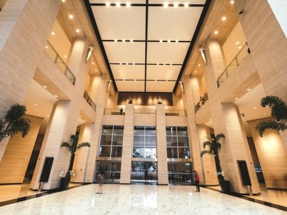 Designed by Wong & Tung International Limited in collaboration with ARADS & Associates, the building’s refined exterior stands out along Makati’s main thoroughfare, Ayala Avenue. This sense of sophistication continues indoors with hotel-grade interior finishes that elevate the overall workplace experience.