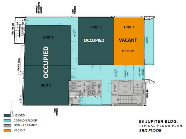 - Certification: Non-PEZA registered building, positioned as a Class B office space offering modern features at competitive lease rates